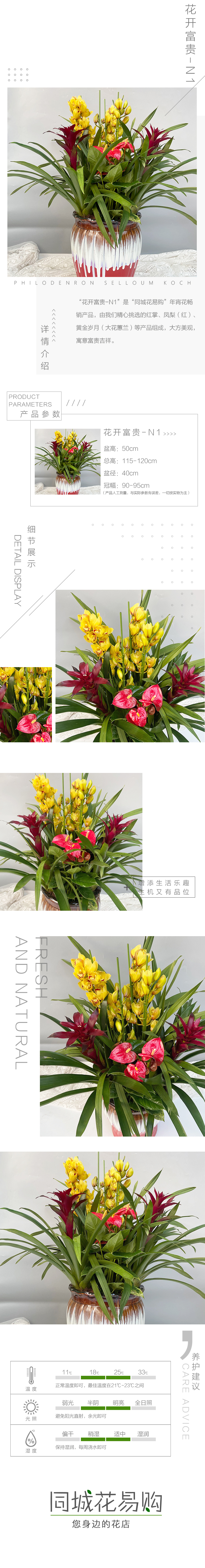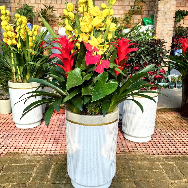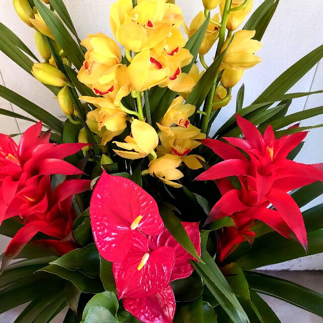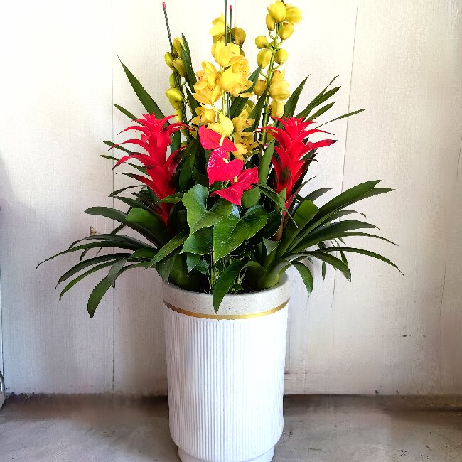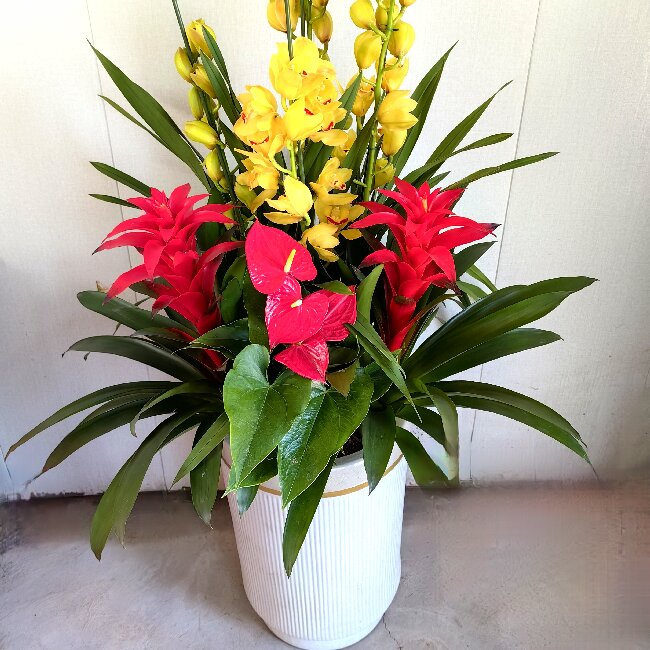 大花蕙兰 凤梨 红掌 组合盆栽