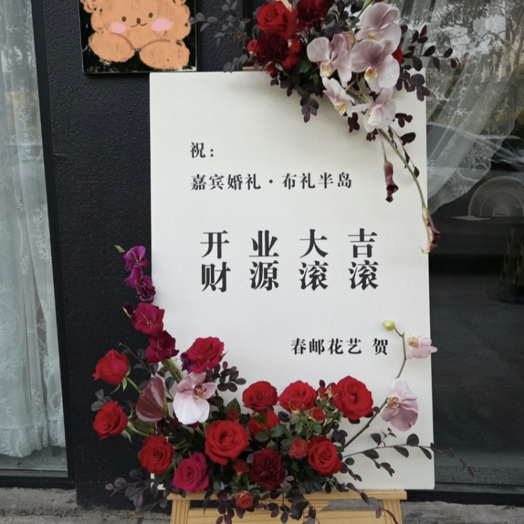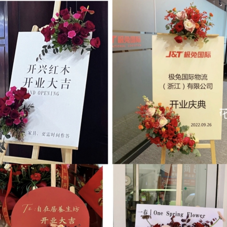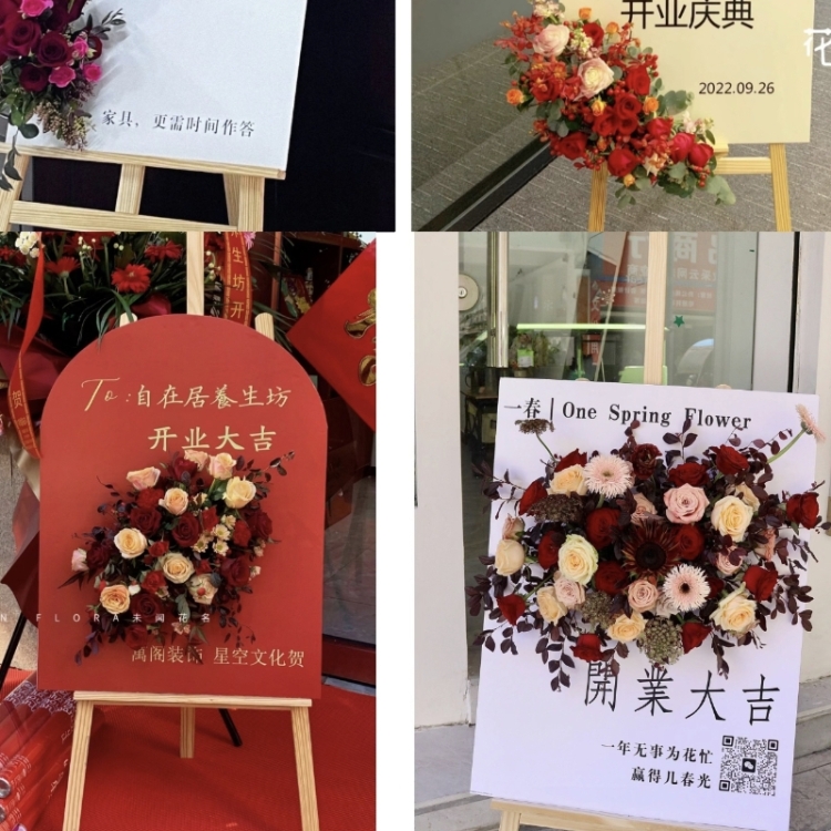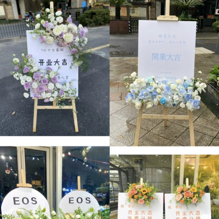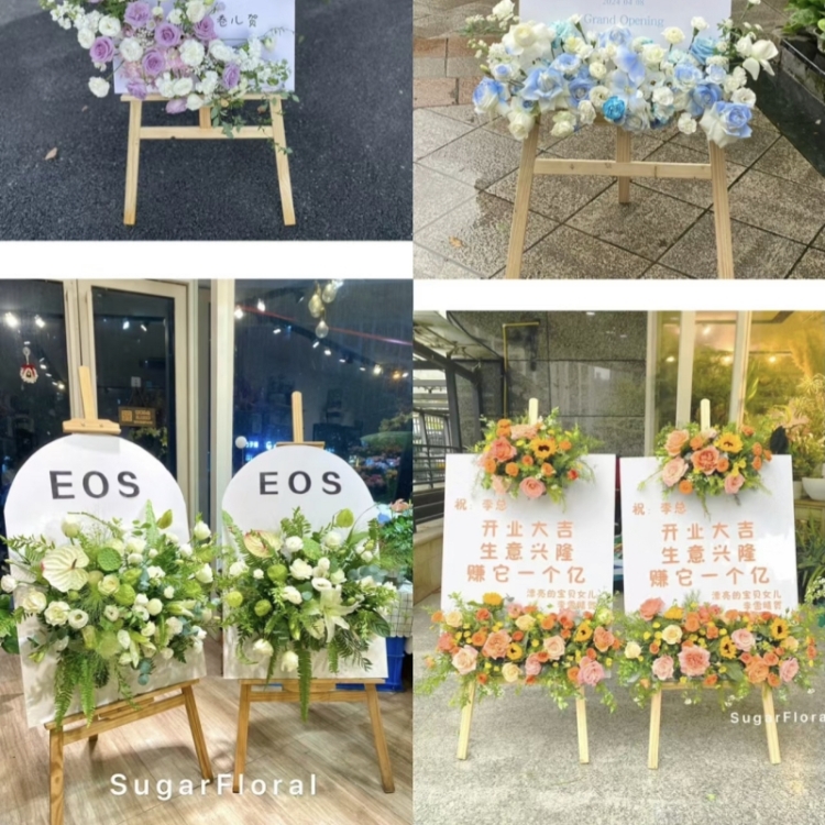 新颖的开业水牌花架 画架组合鲜花,别具一格的视觉体验
