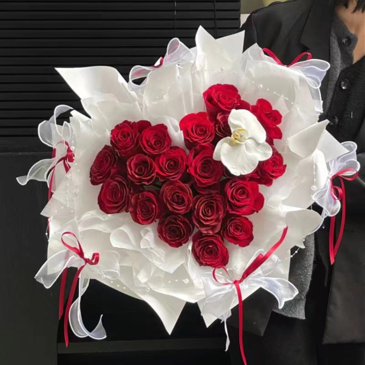 21朵红玫瑰心形花束(多色可选;白色,粉色,香槟色留言备注)