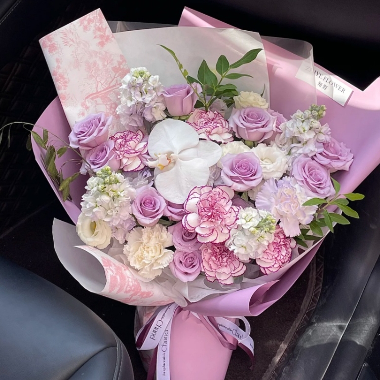 温柔的紫玫瑰搭配紫精灵康乃馨